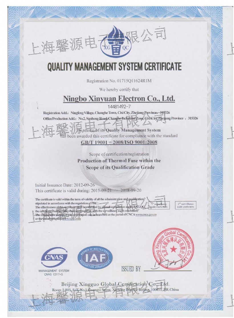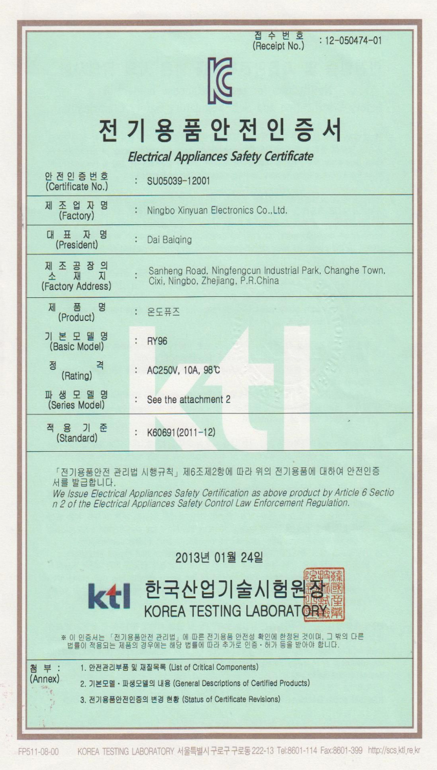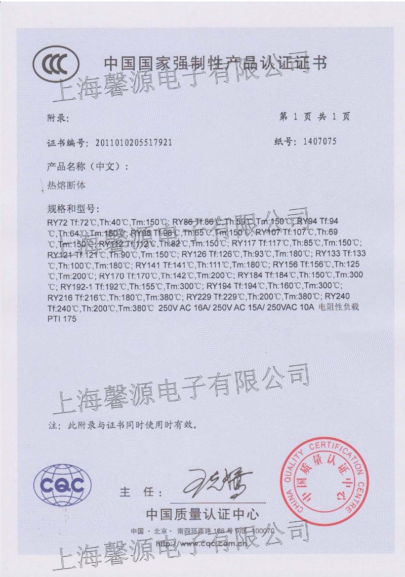 2023年1月31日获得了UL 30A有机物感温型热熔断体全球首张安规认证证书